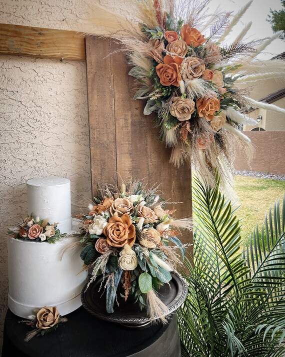Wood Flower Centerpiece Arch Piece Tea Stained Wood Flower Etsy De